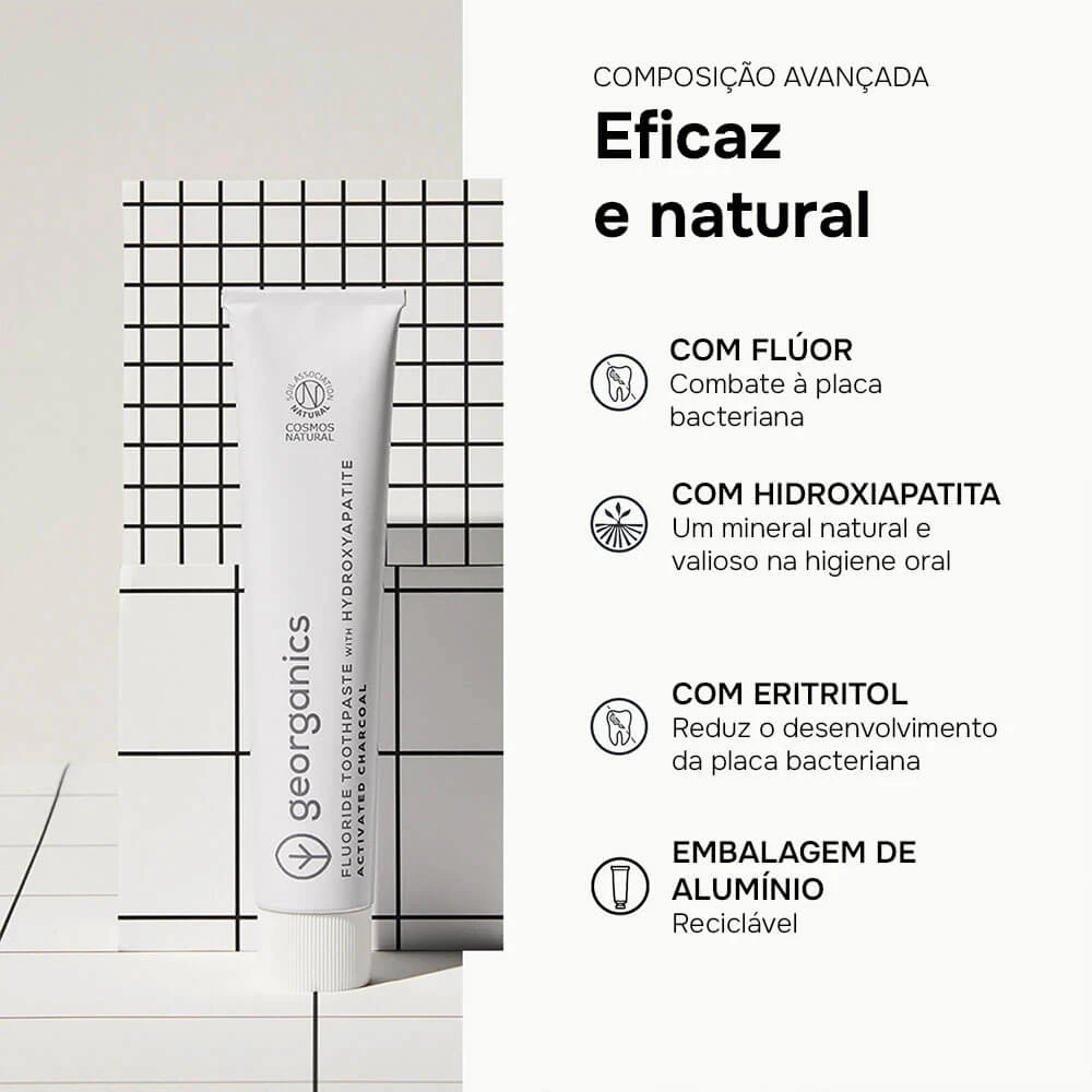 Pasta de Dentes Georganics com Hidroxiapatita – Carvão Ativado