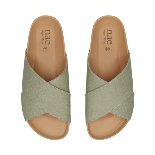 Las Tupai Green de NAE son unas sandalias veganas con un elegante diseño entrecruzado , hechas de Piñatex , un material ecológico derivado de las hojas de piña: una alternativa vegana y sostenible al cuero tradicional.
